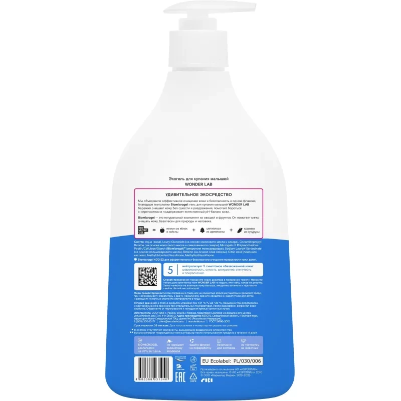 Средство для купания малышей экогель WONDER LAB 540 мл