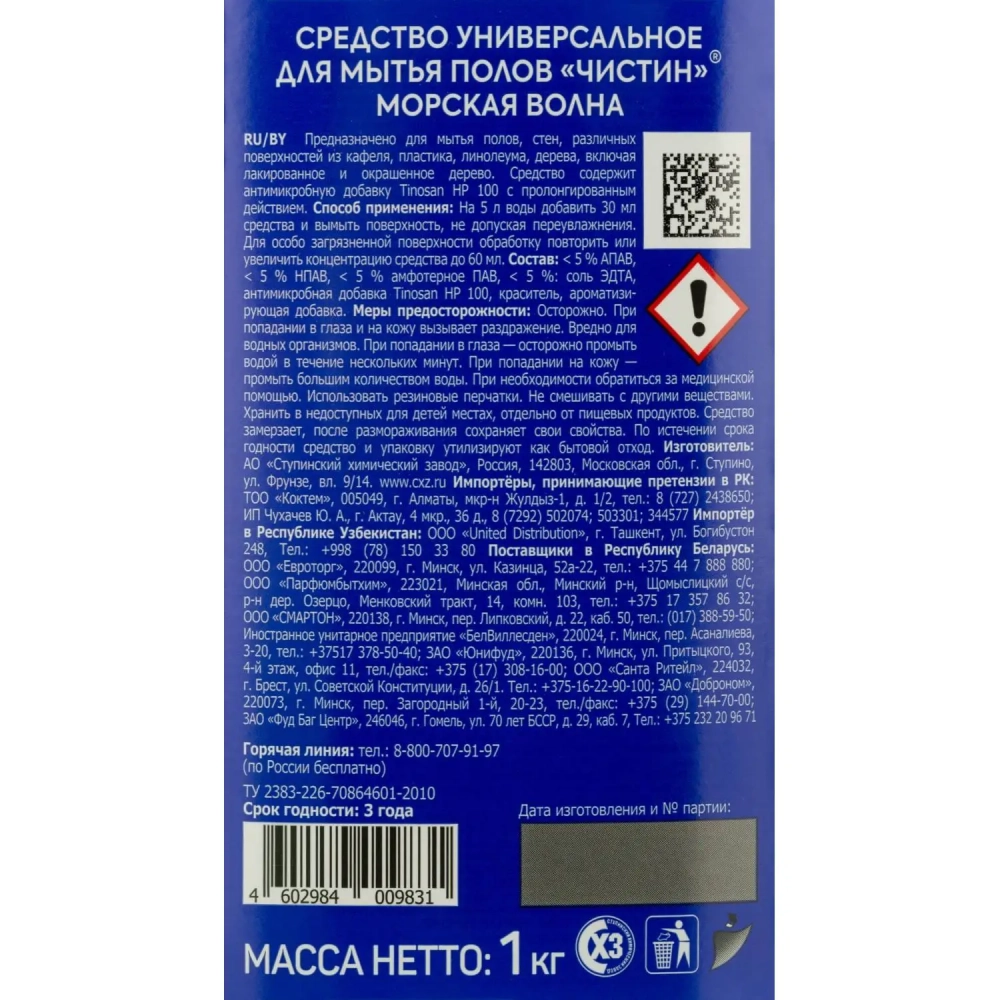 Средство для мытья пола Чистин 1000 г морская волна