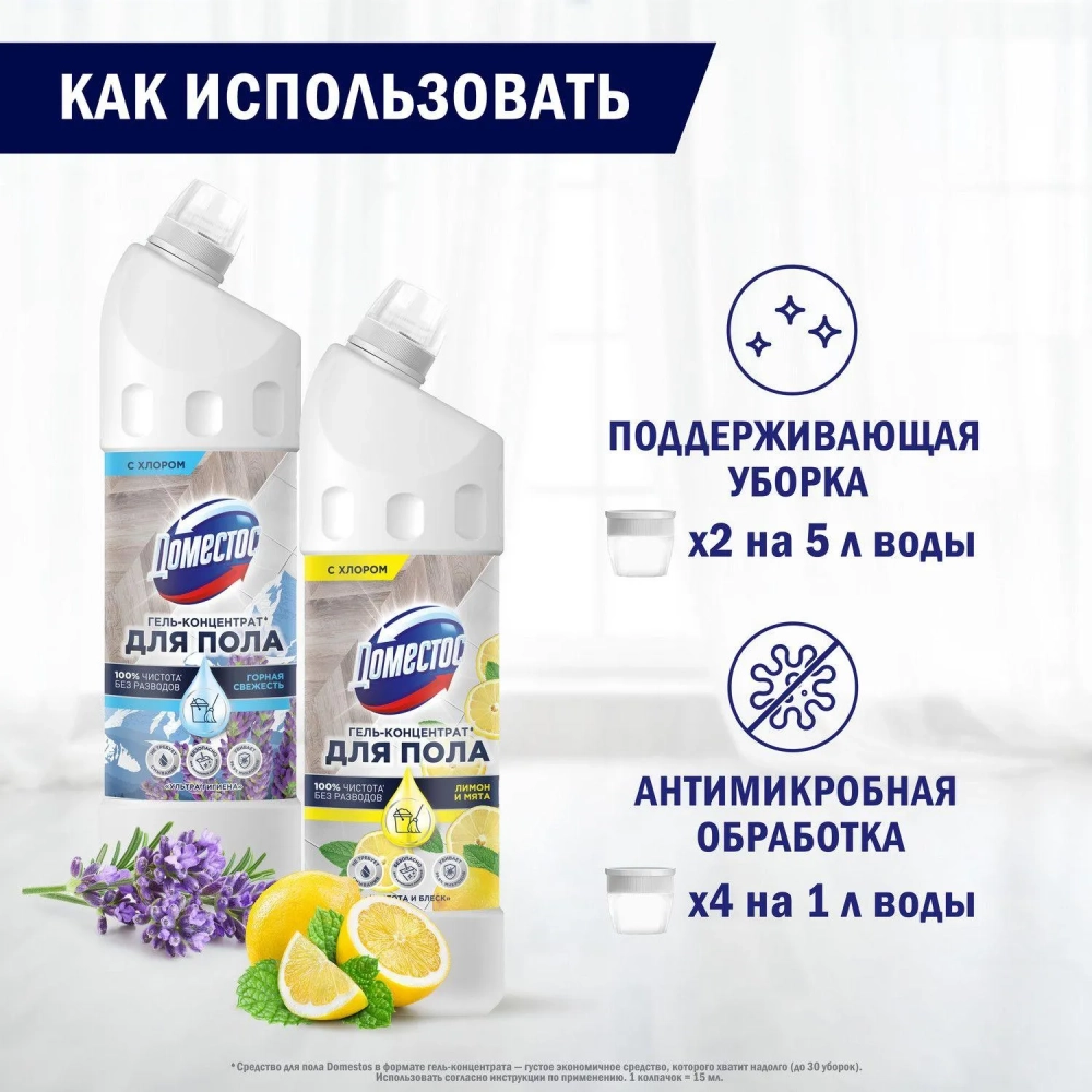 Средство для мытья пола ДОМЕСТОС чистота и блеск 1000мл