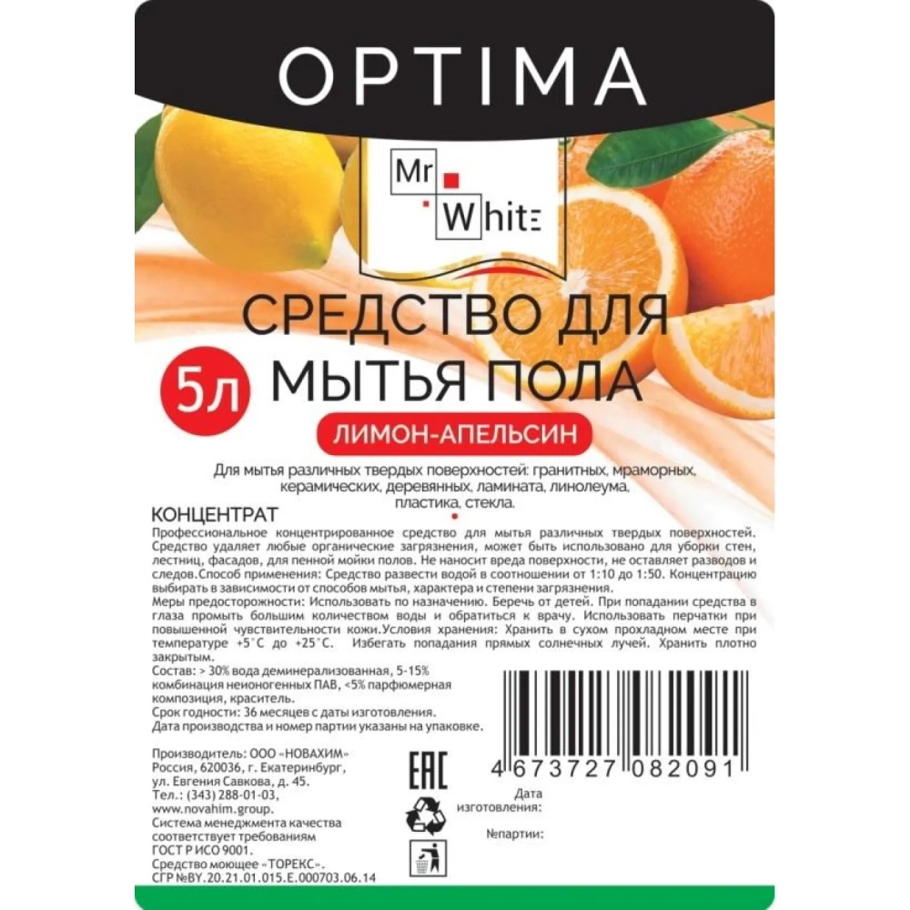 Средство для мытья пола Mr.White OPTIMA конц Лимон-Апел 5л_КЗН_ЧЛБ_НСК_СПБ