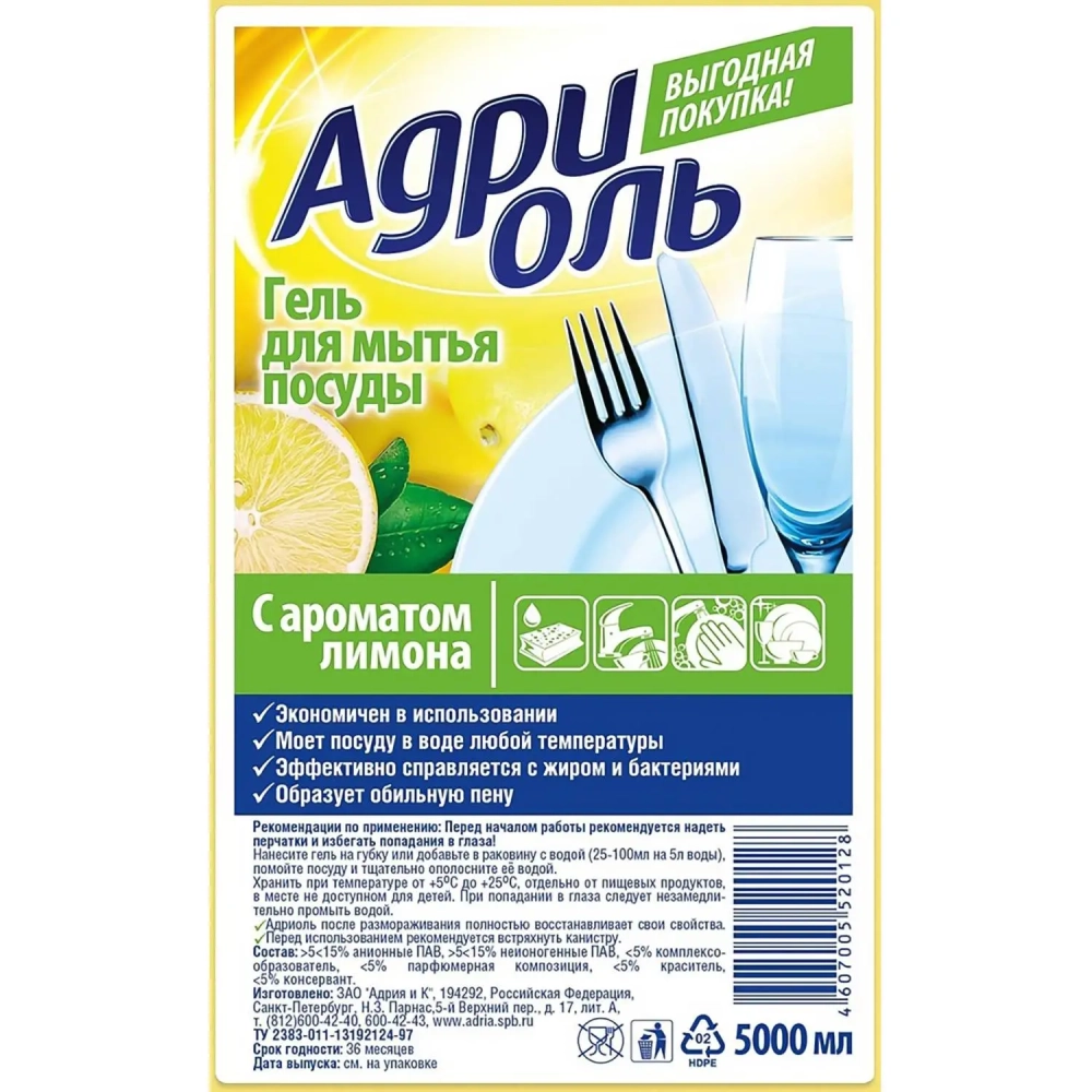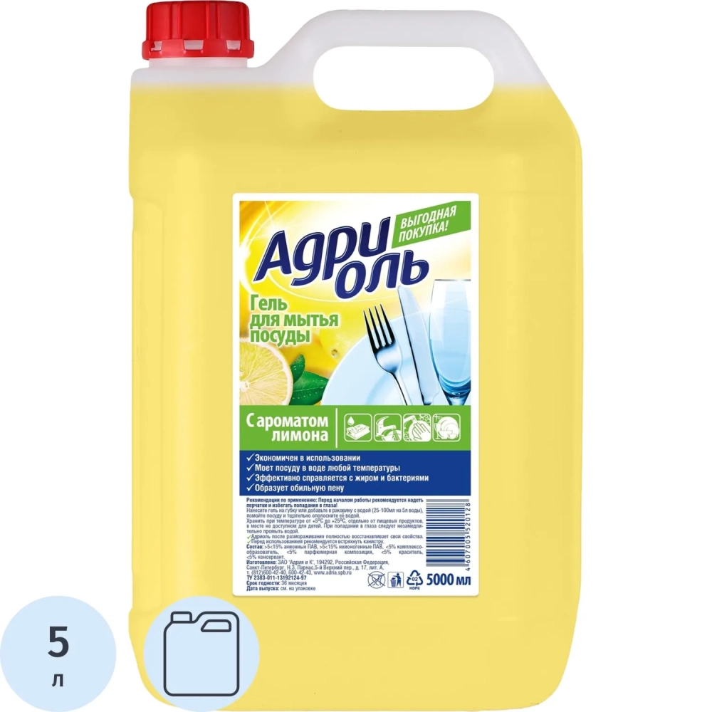 Средство для мытья посуды Адриоль гель с ароматом лимона 5л