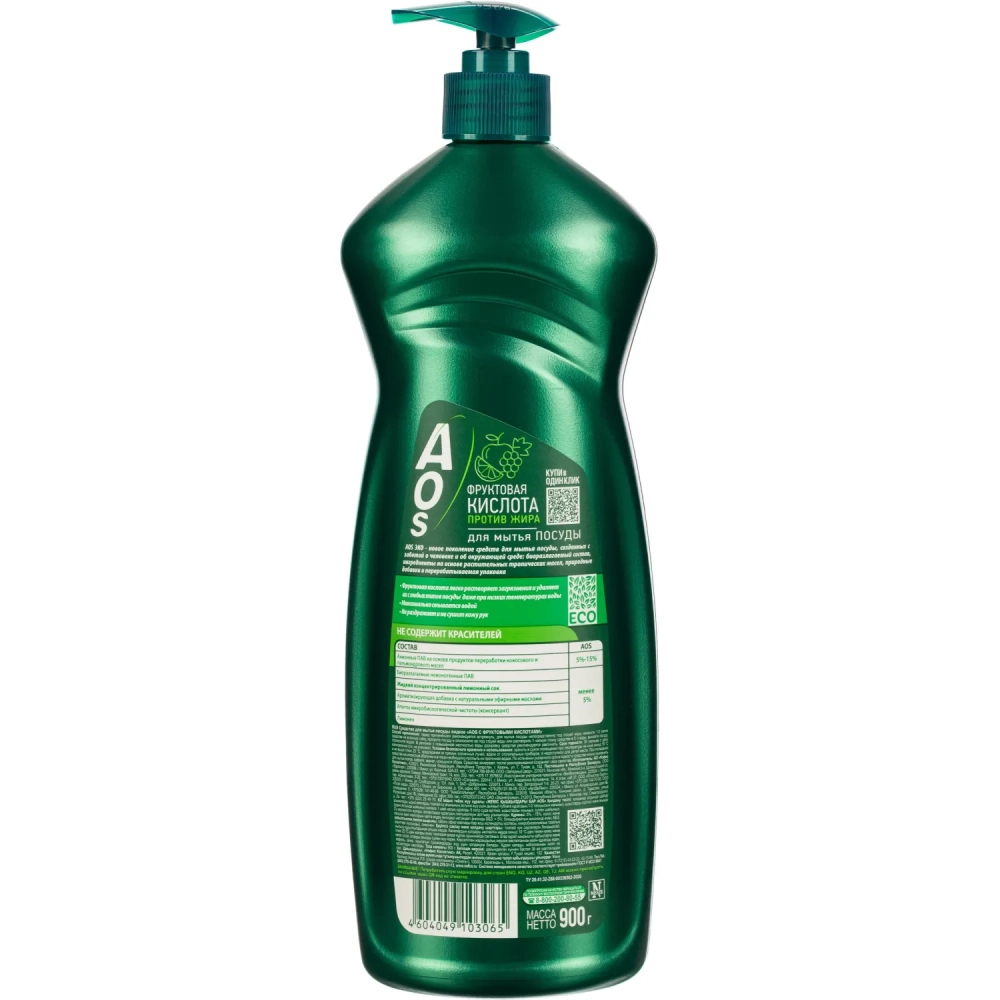 Средство для мытья посуды AOS ЭКО с Фруктовыми кислотами 900гр