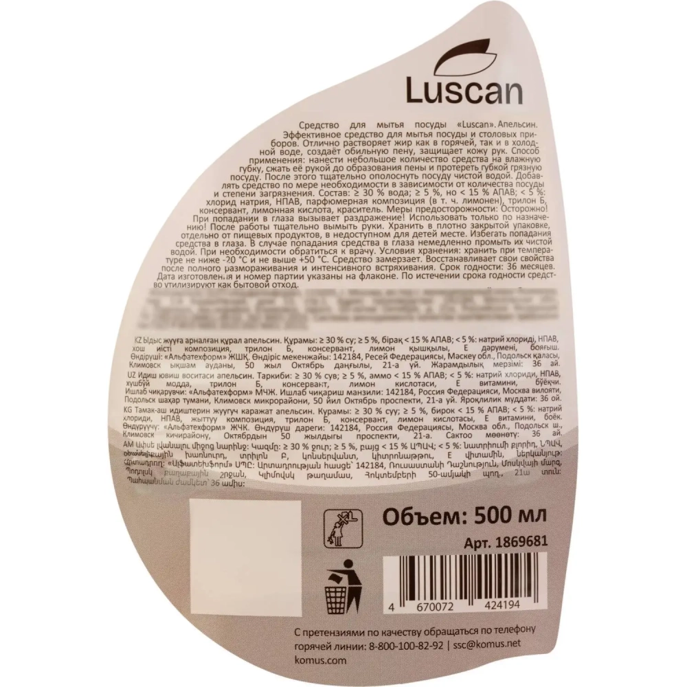 Средство для мытья посуды Luscan Бальзам Апельсин 500 мл флип-топ