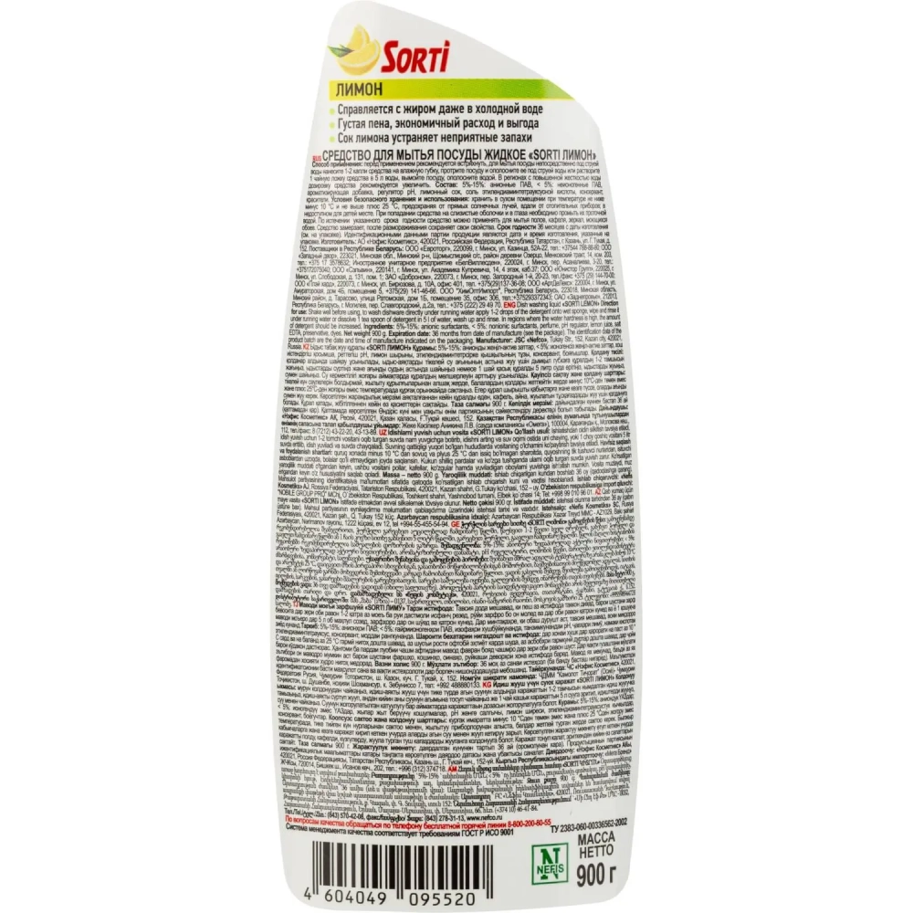 Средство для мытья посуды Sorti Лимон 900гр