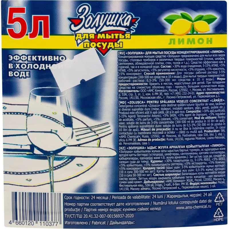 Средство для мытья посуды ЗОЛУШКА Лимон 5л ПЭТ Бутылка