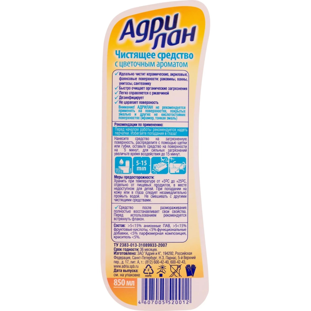 Средство для сантехники Адрилан 0,85 л цветочый_СПб
