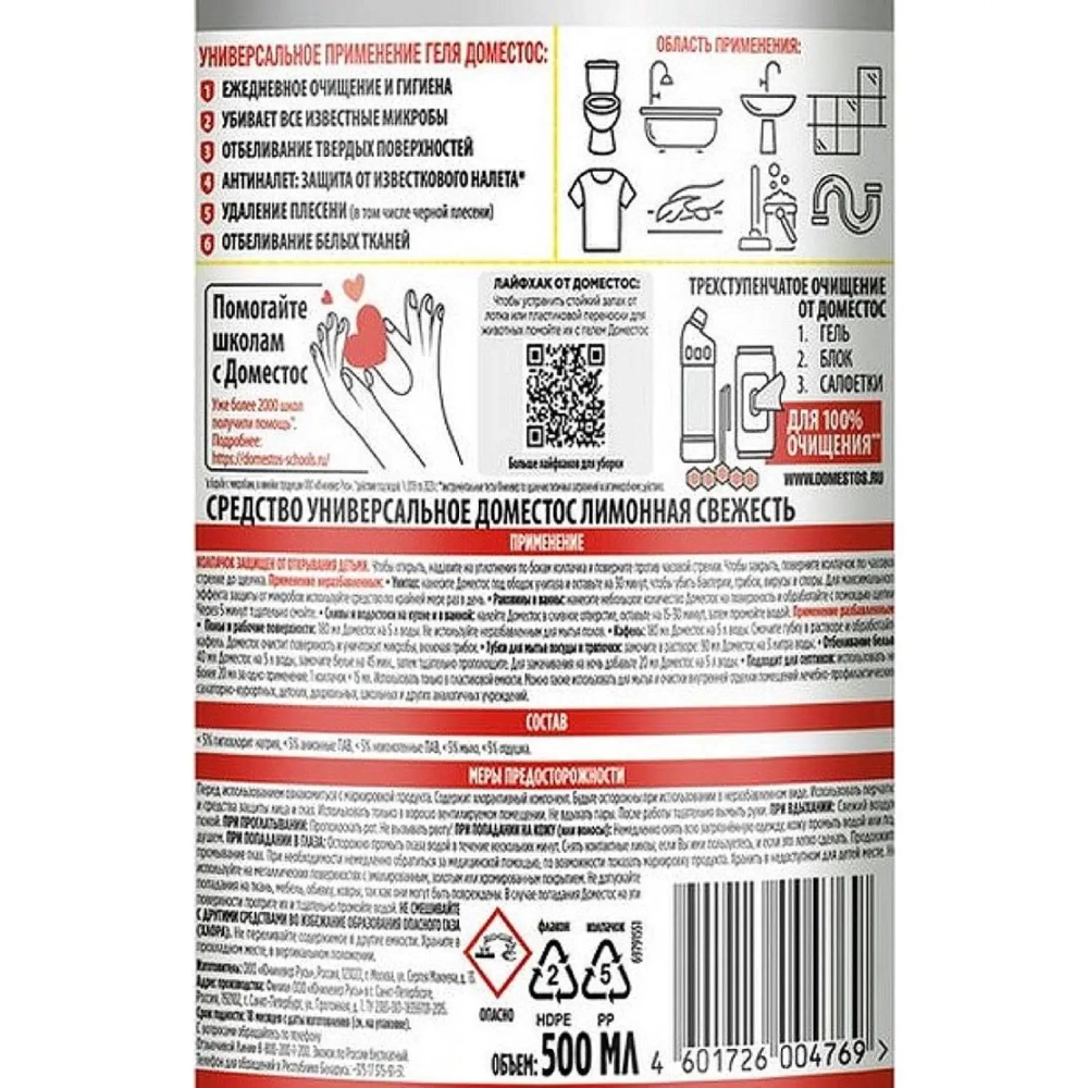 Средство для сантехники Доместос универсальное Лимонная свежесть 500 мл