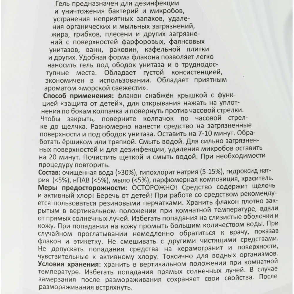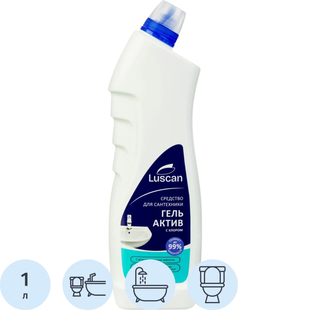 Средство для сантехники Luscan гель Актив с хлором 1 л, Морская свежесть