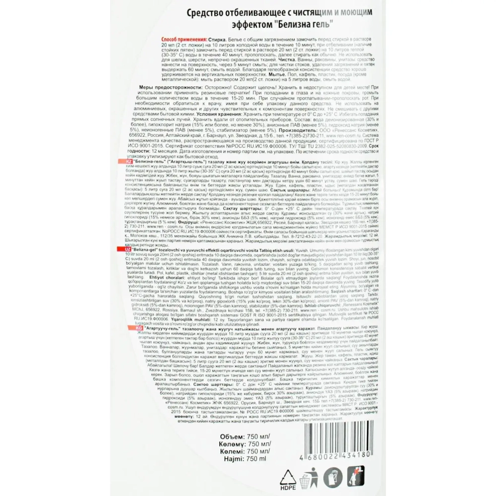 Средство для сантехники отбеливающее ВЫГОДНАЯ УБОРКА Белизна-гель 750 мл