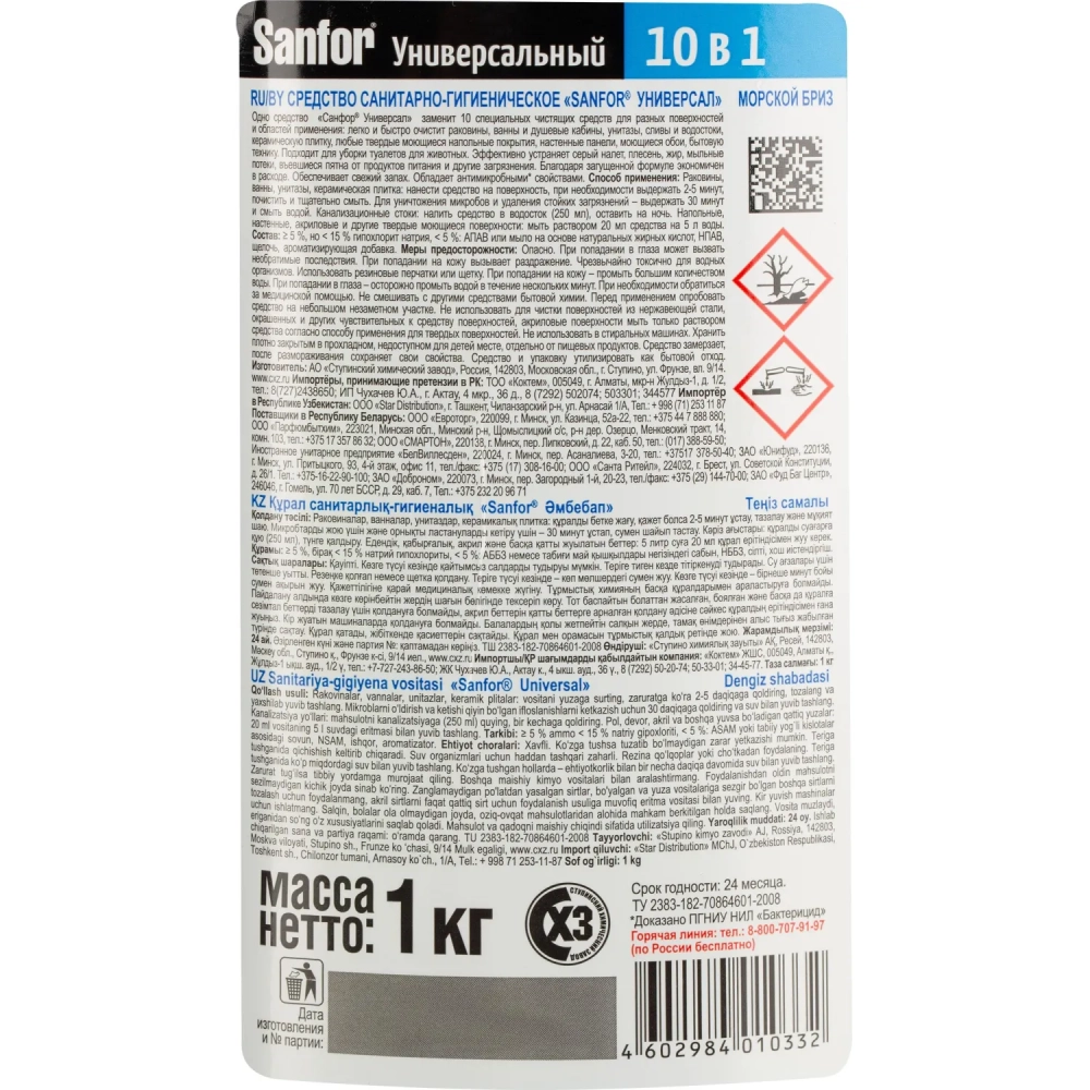 Средство для сантехники Sanfor универсал морской бриз 1000гр