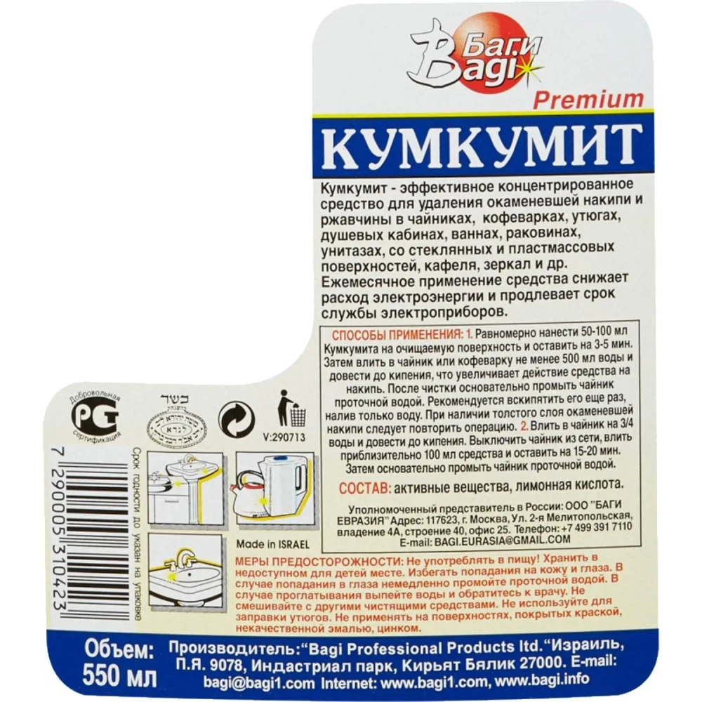 Средство для удаления накипи КУМКУМИТ 550 мл пластик металл чайники водонаг