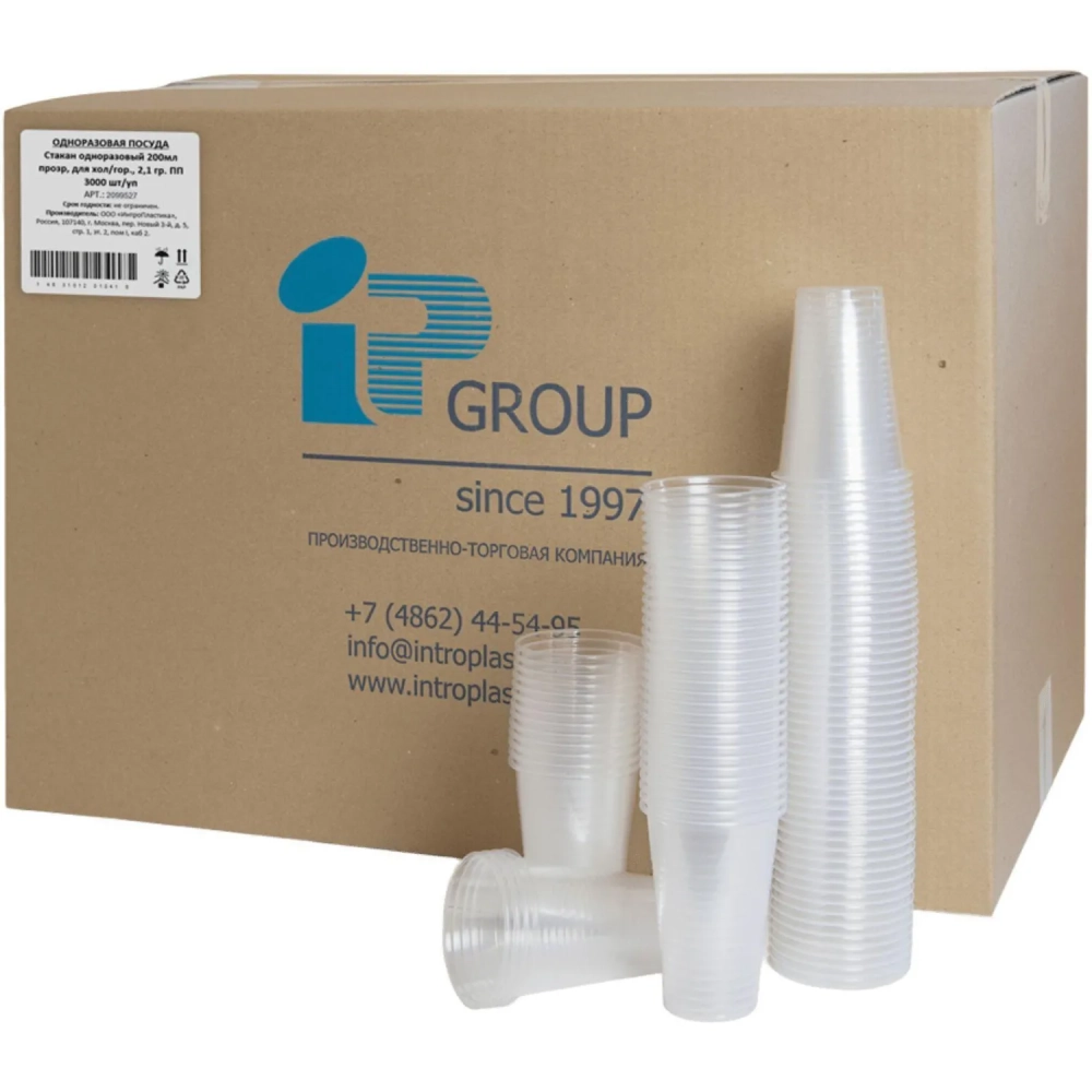 Стакан одноразовый 200мл прозр. ПП 3000 шт/кор
