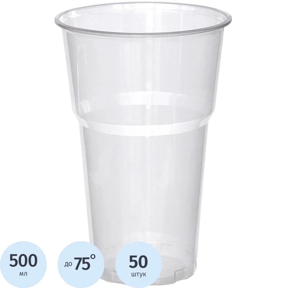 Стакан одноразовый 500мл прозр., для хол/гор. бюджет, КОМУС ПП 50шт/уп