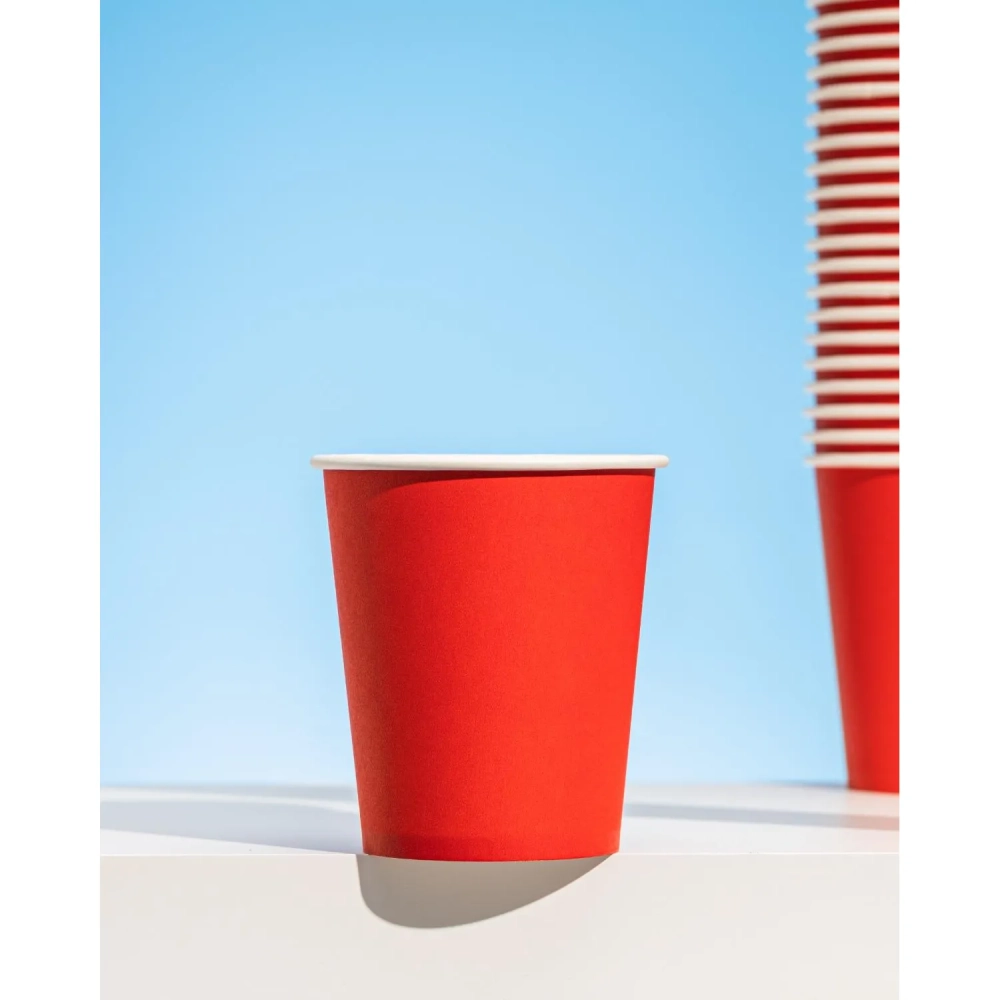 Стакан одноразовый бум 1-сл. d-80мм 250мл красный КОМУС 75шт/уп