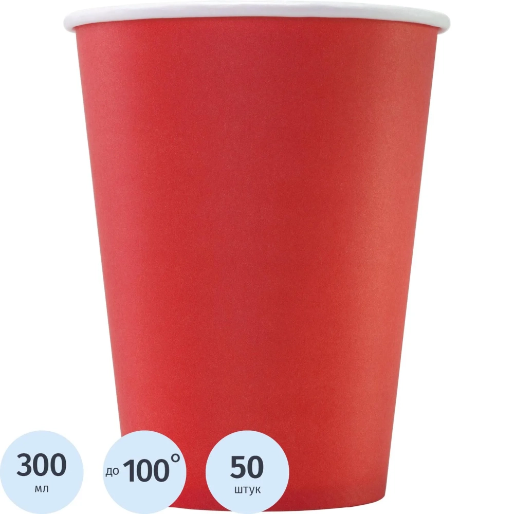 Стакан одноразовый бум 1-сл. d-90мм 300мл красный КОМУС 50шт/уп