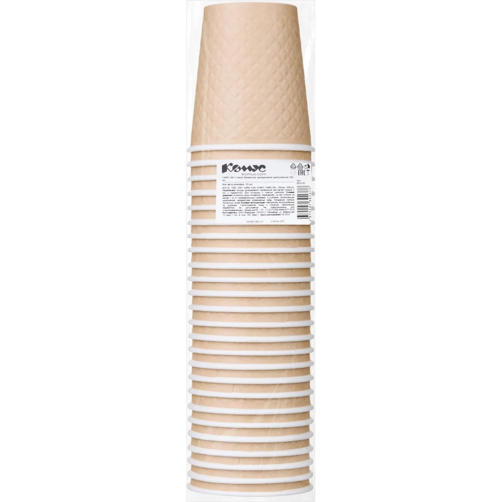 Стакан одноразовый бум двухслойный d-80мм 250мл Waffle Craft (25шт/уп)