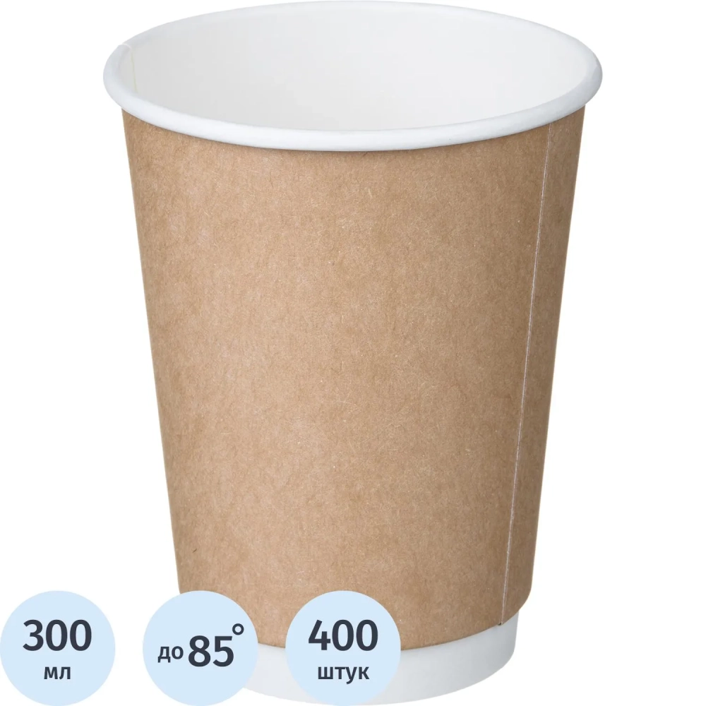 Стакан одноразовый бум двухслойный d-90мм 300мл коричневый (400шт/кор)