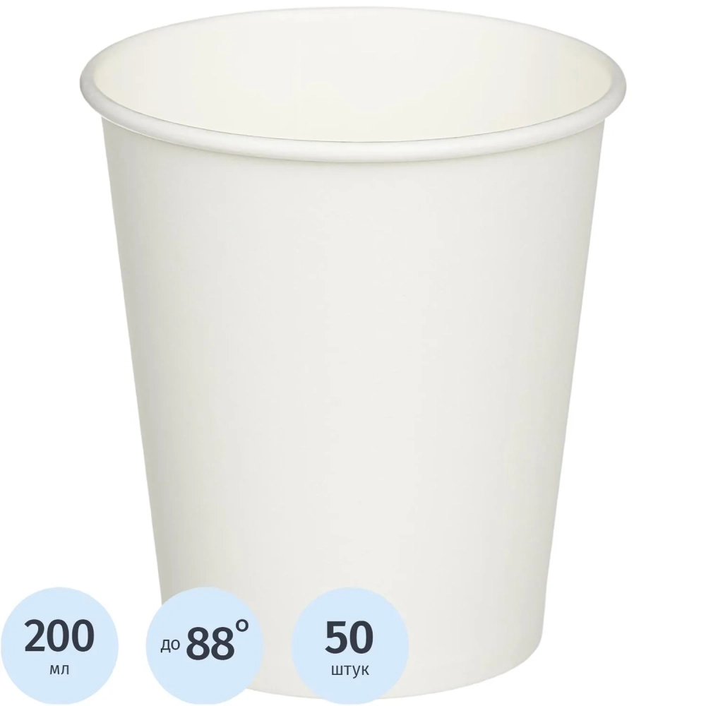 Стакан одноразовый бум однослойный d-80мм 200мл белый 50шт/уп