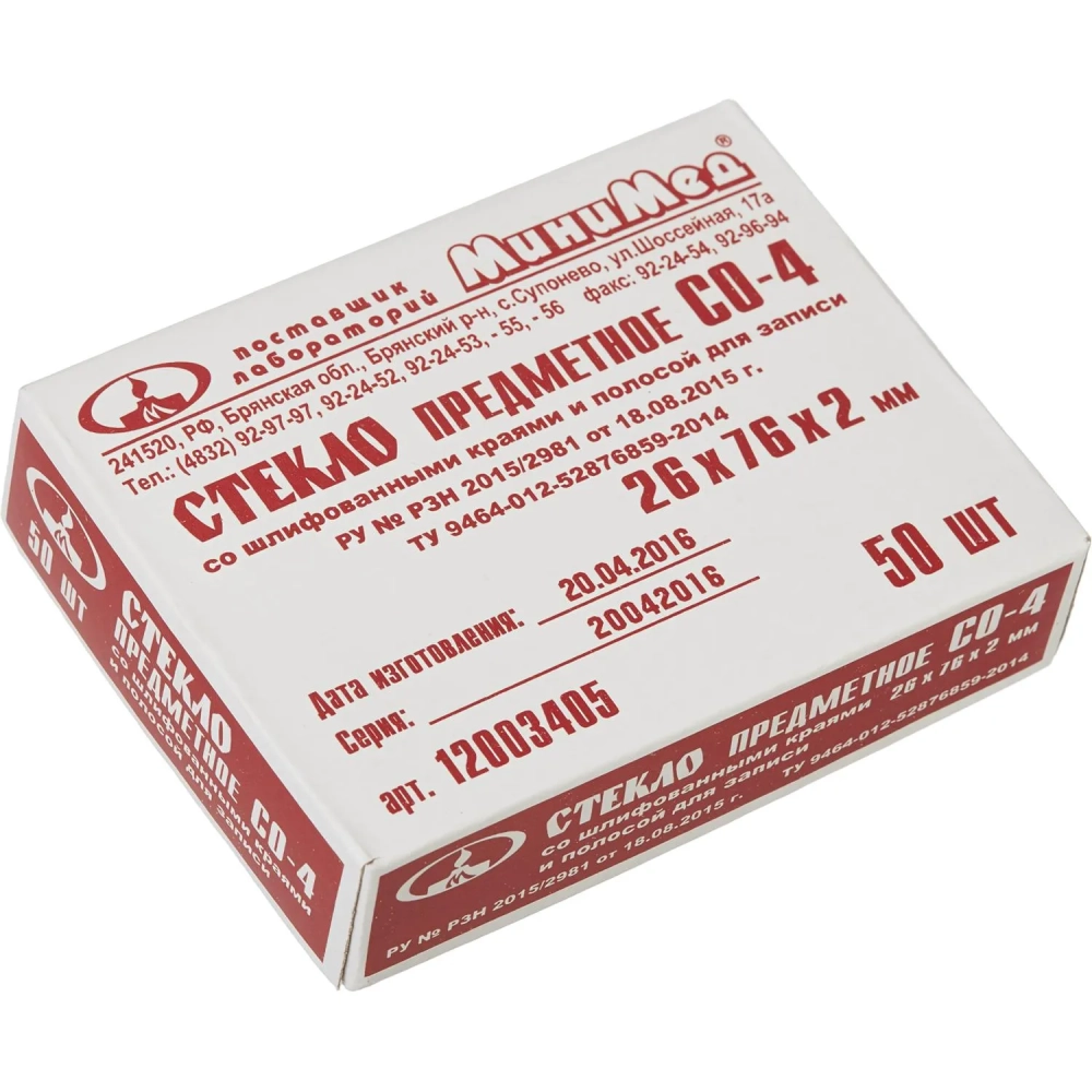 Стекло предметное СО-4, 26х76мм,толщ.2мм со шл.кр и полосой 50шт/уп12003405