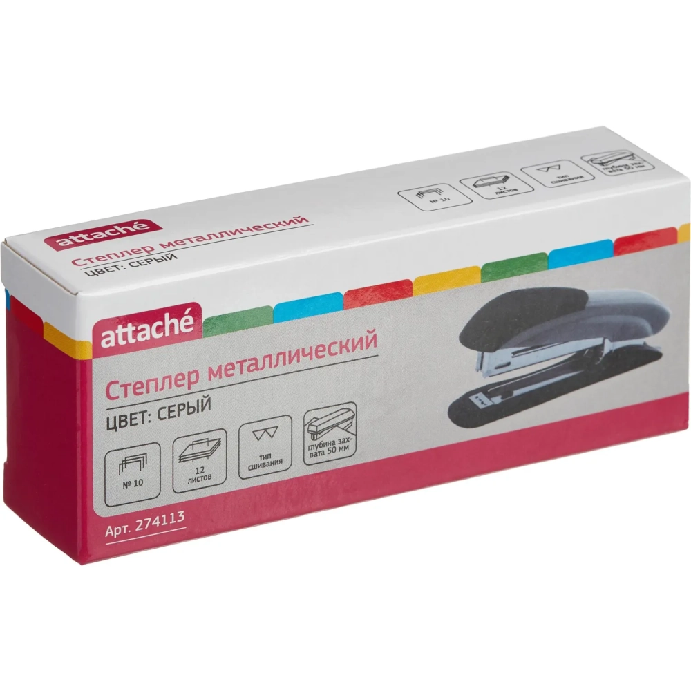 Степлер Attache №10 до 12л., серый антистеп