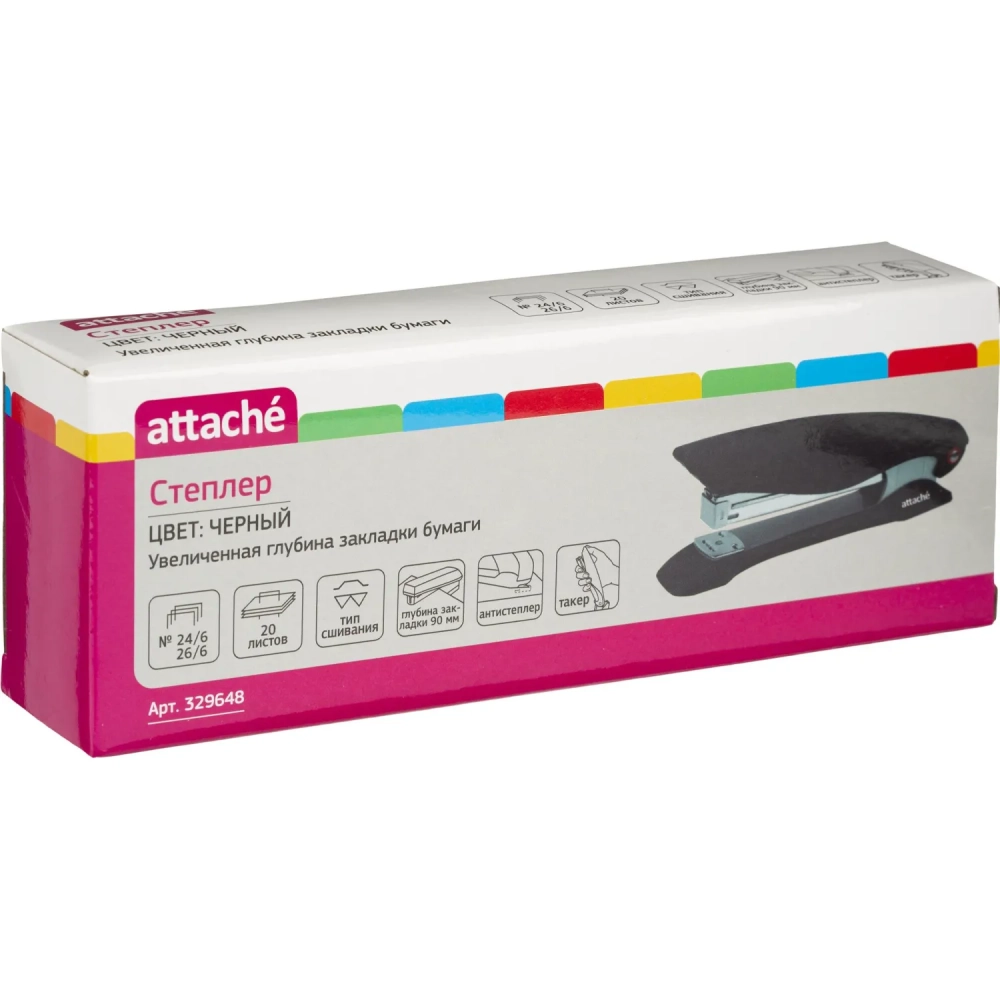 Степлер Attache №24/6 до 20л. увелич. глубина закладки черн антистеп
