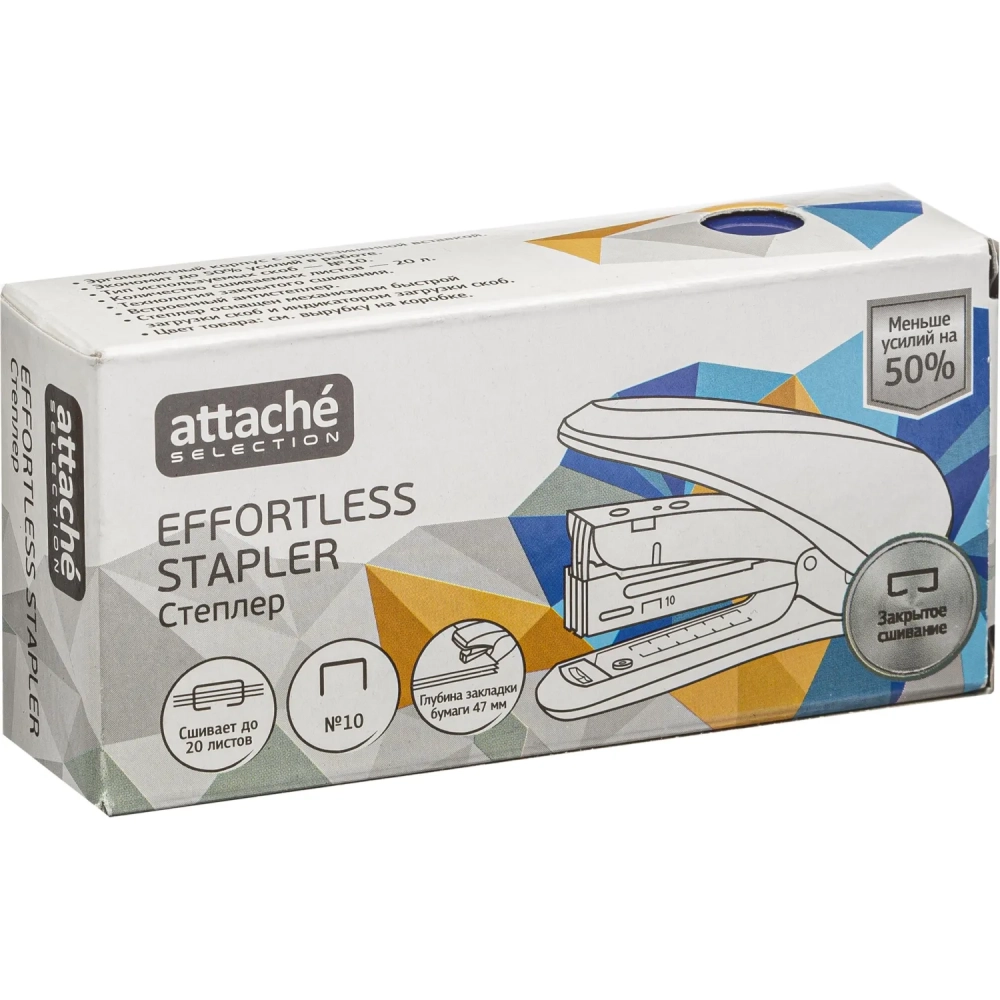 Степлер Attache Selection MSBL1020 (№10) до 20лис,энергосбер,металл,син