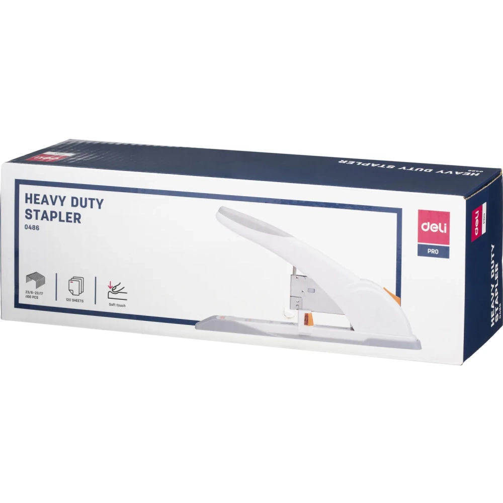Степлер мощный Deli N23/6-23/17 до 120 листов, в картонной уп., белый