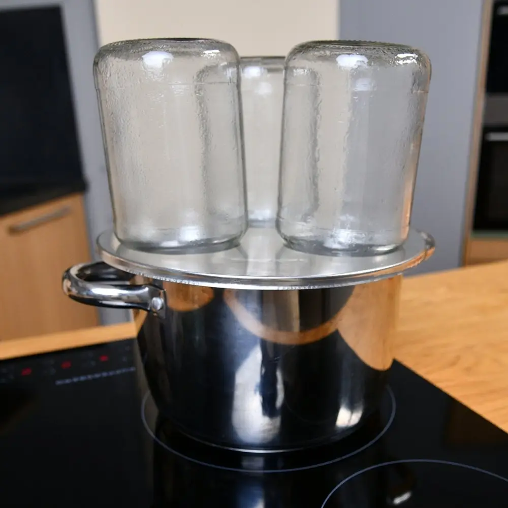 В период летних заготовок довольно часто приходится стерилизовать банки. Специальный стерилизатор поможет быстро и без усилий простерилизовать сразу три банки, без необходимости держать их в руках над горячим паром. Поместите круг на кастрюлю, в отверстие вставьте банки вверх дном. Обработка горячим паром — проверенный способ избавиться от бактерий и обеспечить консервам длительный срок хранения. Изготовлено из стали.
