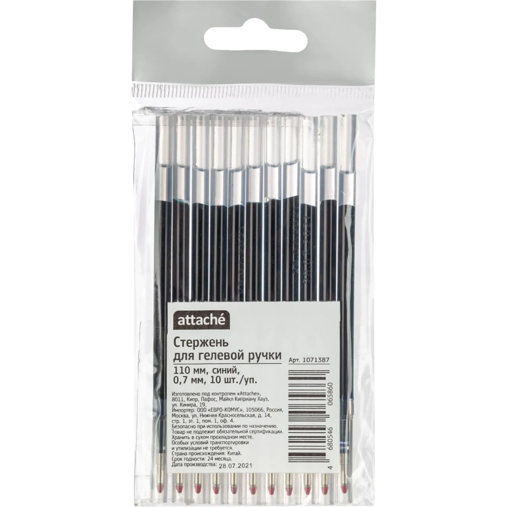Стержень гелевый 110мм синий, 0,7 мм, 10шт/уп
