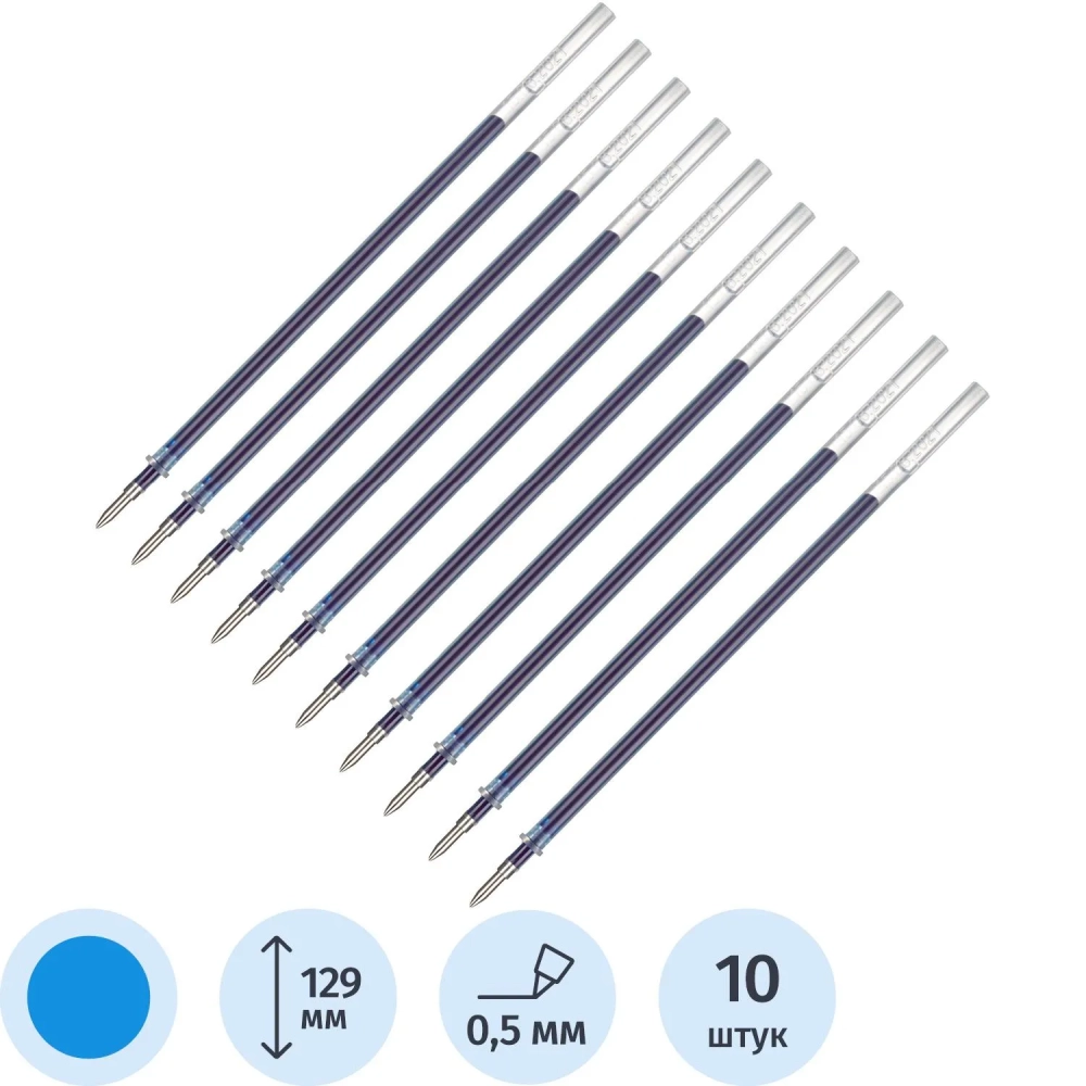 Стержень гелевый 129мм Attache синий 0,5мм, 10шт/уп