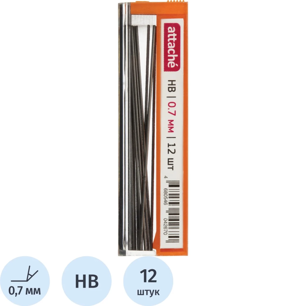 Стержень микрографический полимерный 0,7мм Attache HB 12 грифелей
