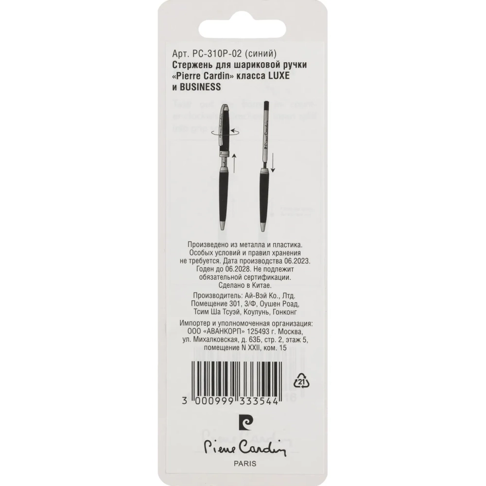 Стержень шариковый 100мм Pierre Cardin ,масл, PC-310Р-02