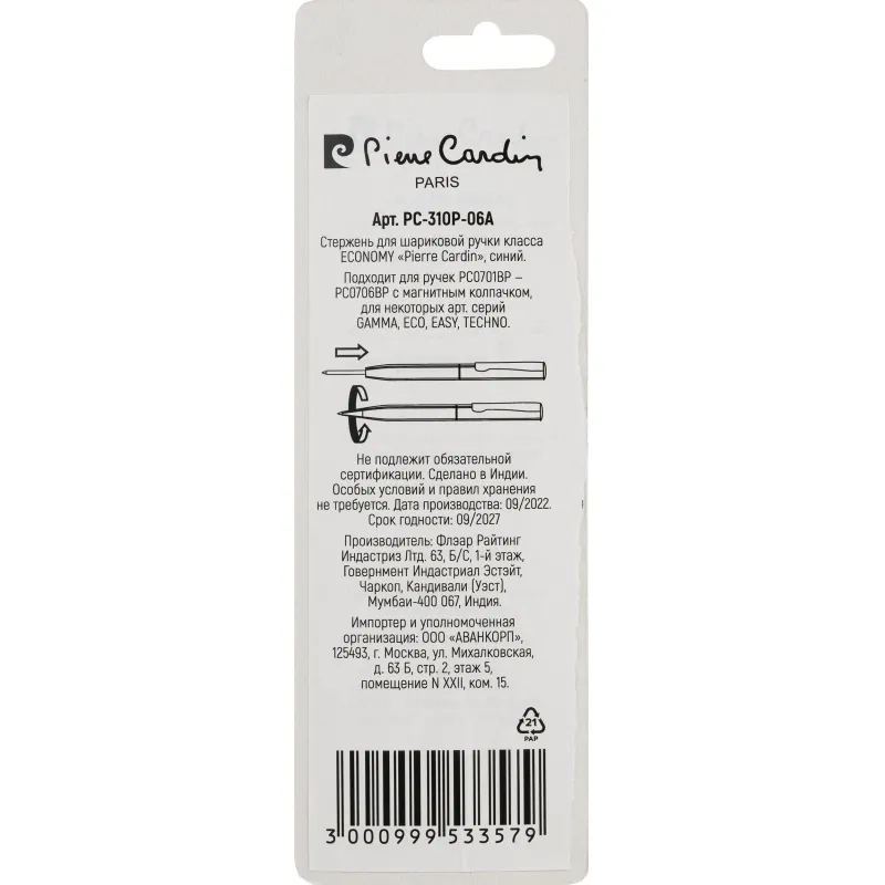 Стержень шариковый 99мм Pierre Cardin PC-310P-06A для 517463, 434063, синий