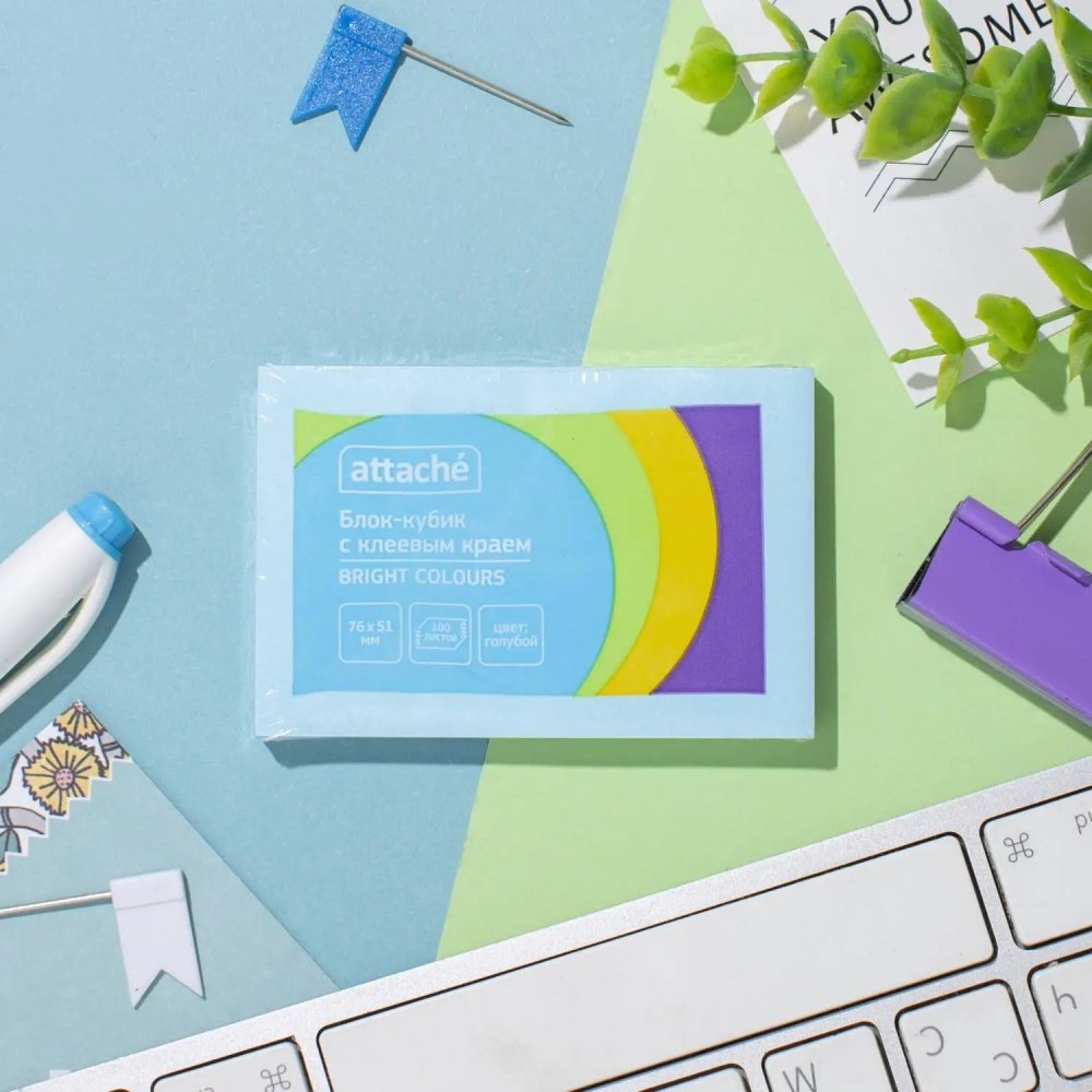 Стикеры ATTACHE Bright colours с клеев.краем 76х51 голубой 100л