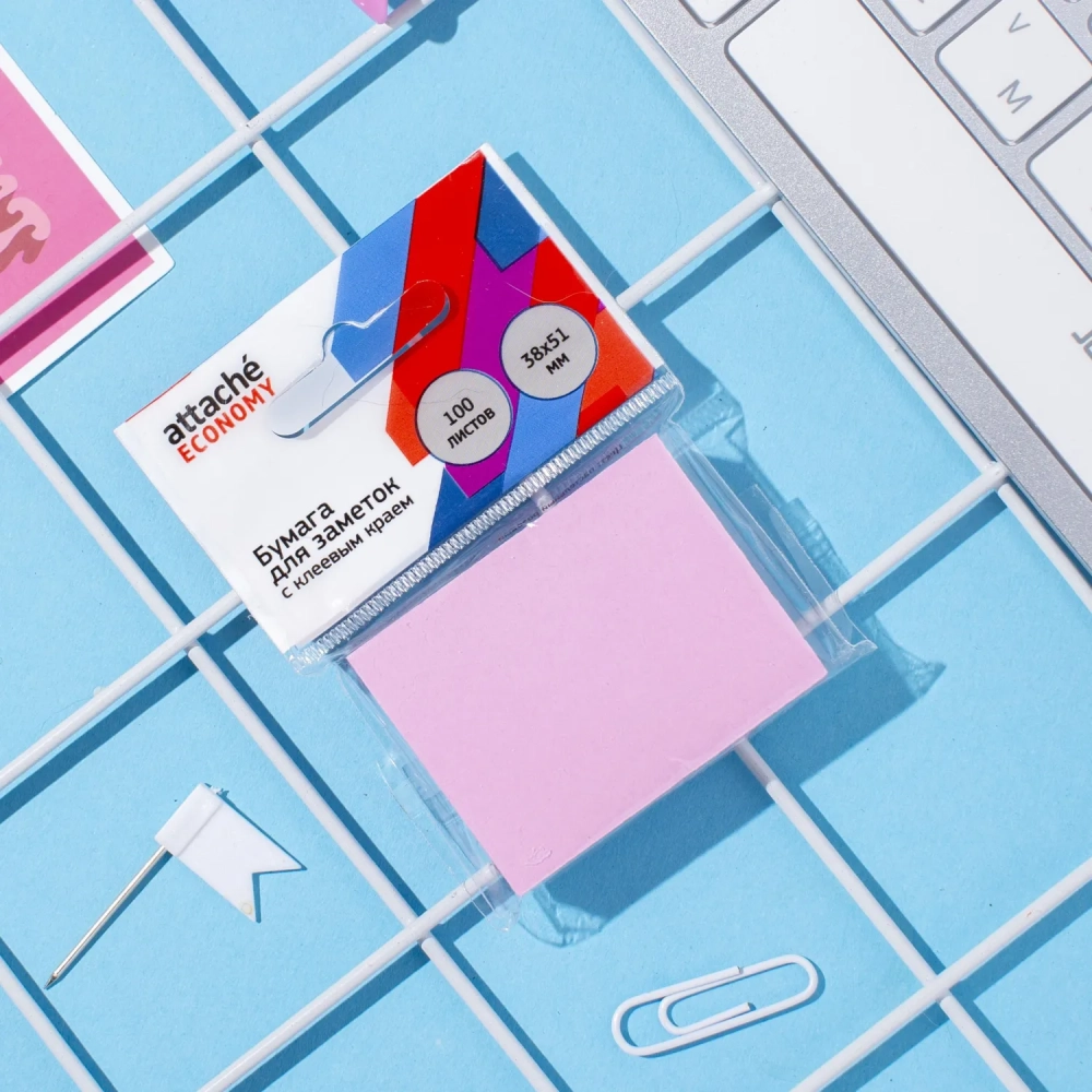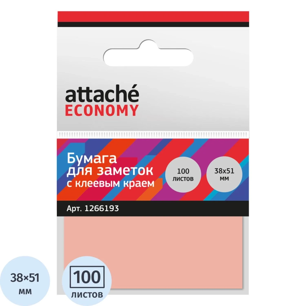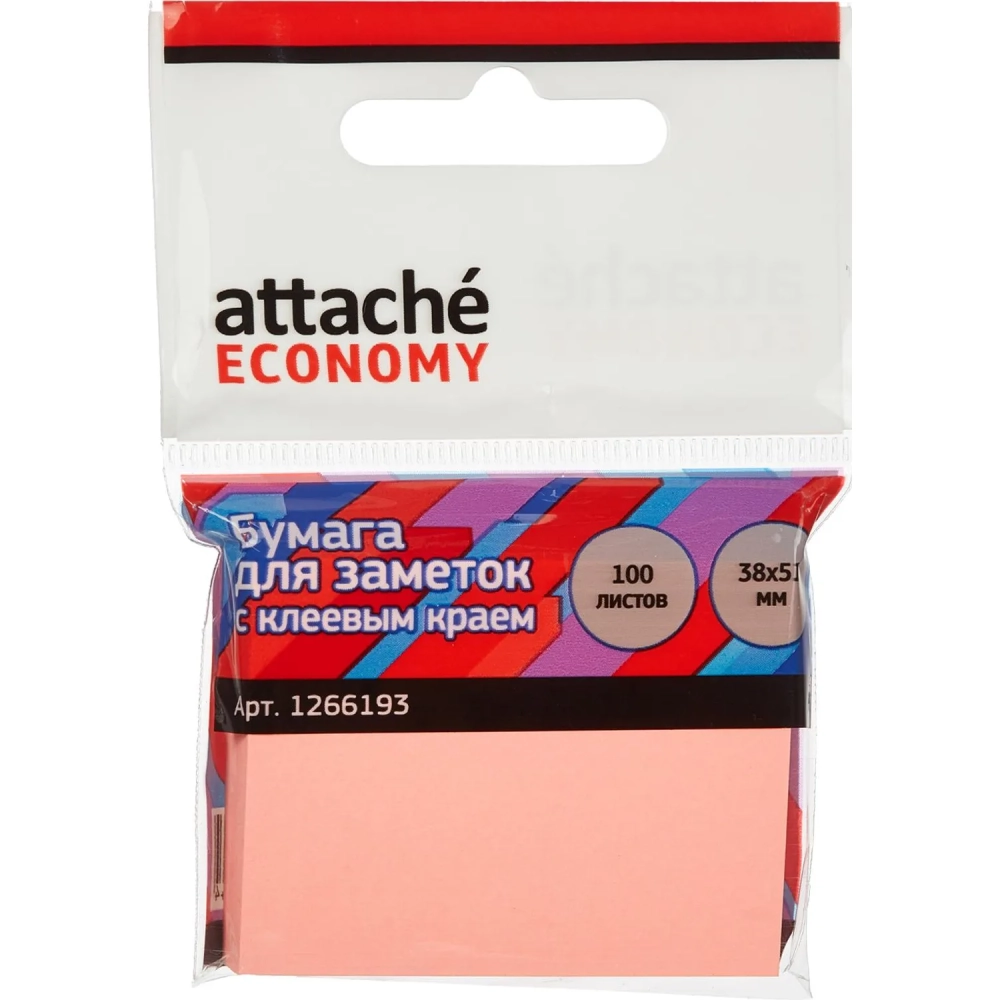 Стикеры Attache Economy с клеев.краем 38x51 мм,100 лист неоновый розовый