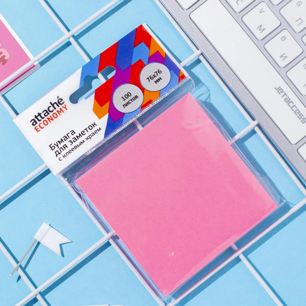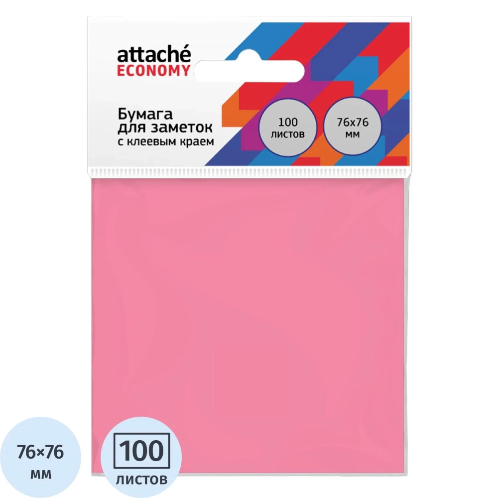 Стикеры Attache Economy с клеев.краем 76x76 мм 100 лист неоновый розовый