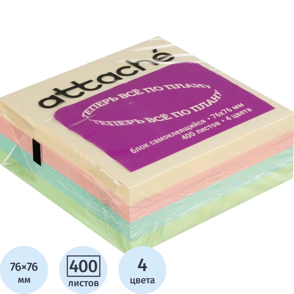 Стикеры Attache куб 76х76, пастель 4 цвета 400 л