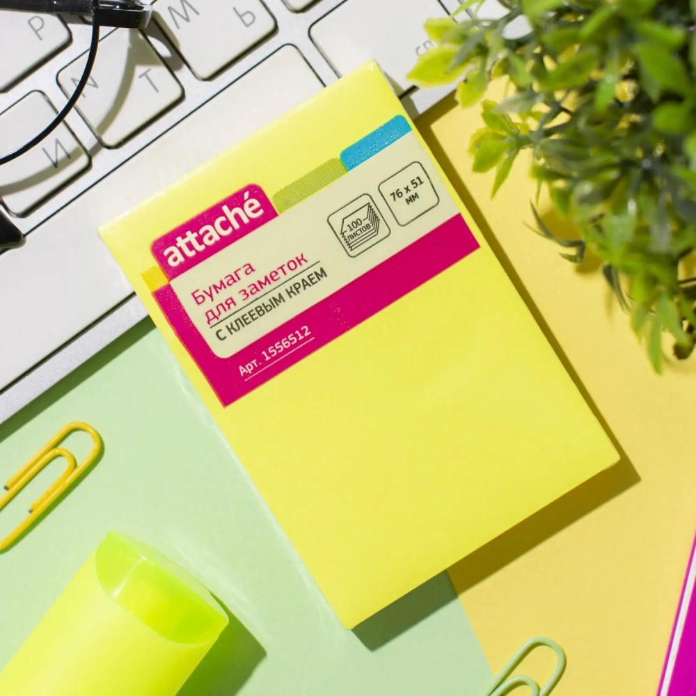 Стикеры Attache с клеев. краем 76х51, неон, желтый 100л