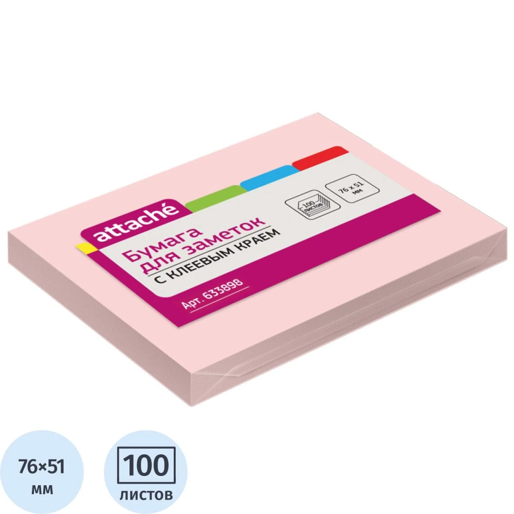 Стикеры ATTACHE с клеев.краем 76х51 розовый 100л