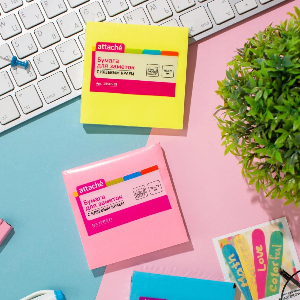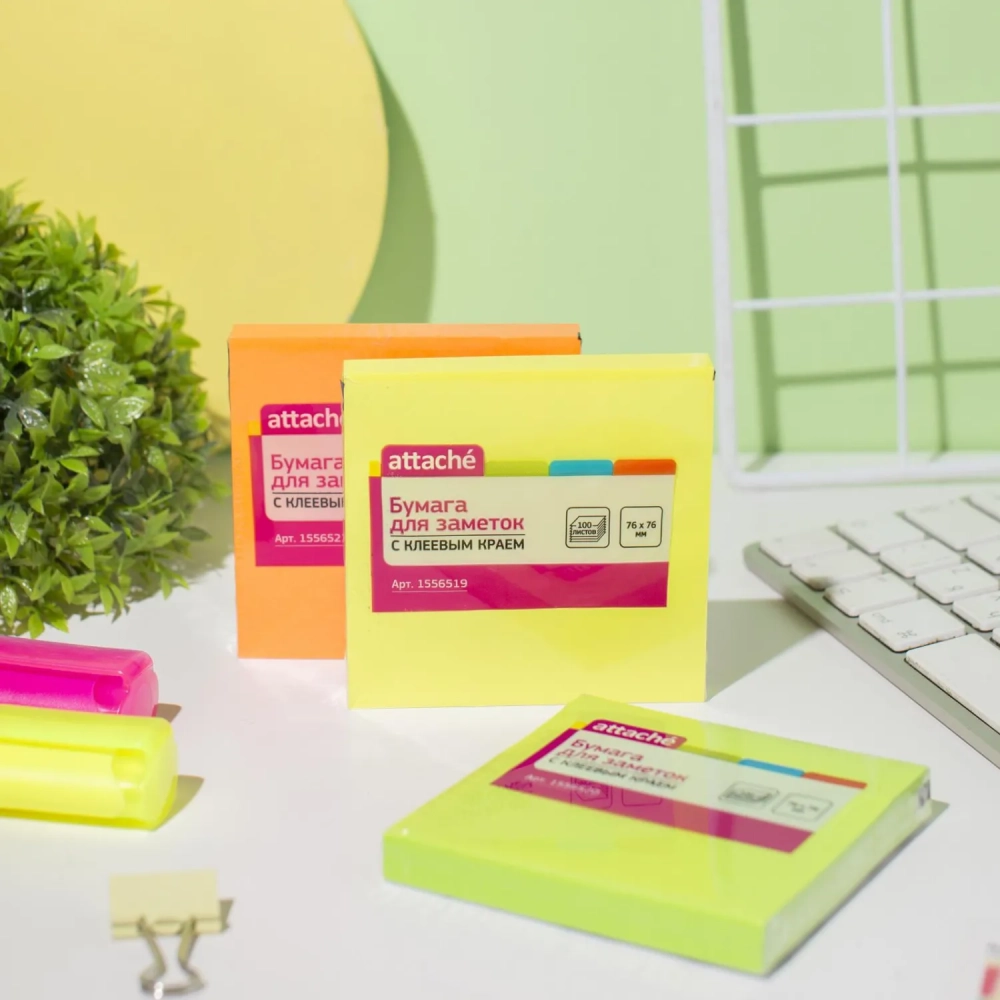 Стикеры Attache с клеев. краем 76х76, неон, желтый 100л