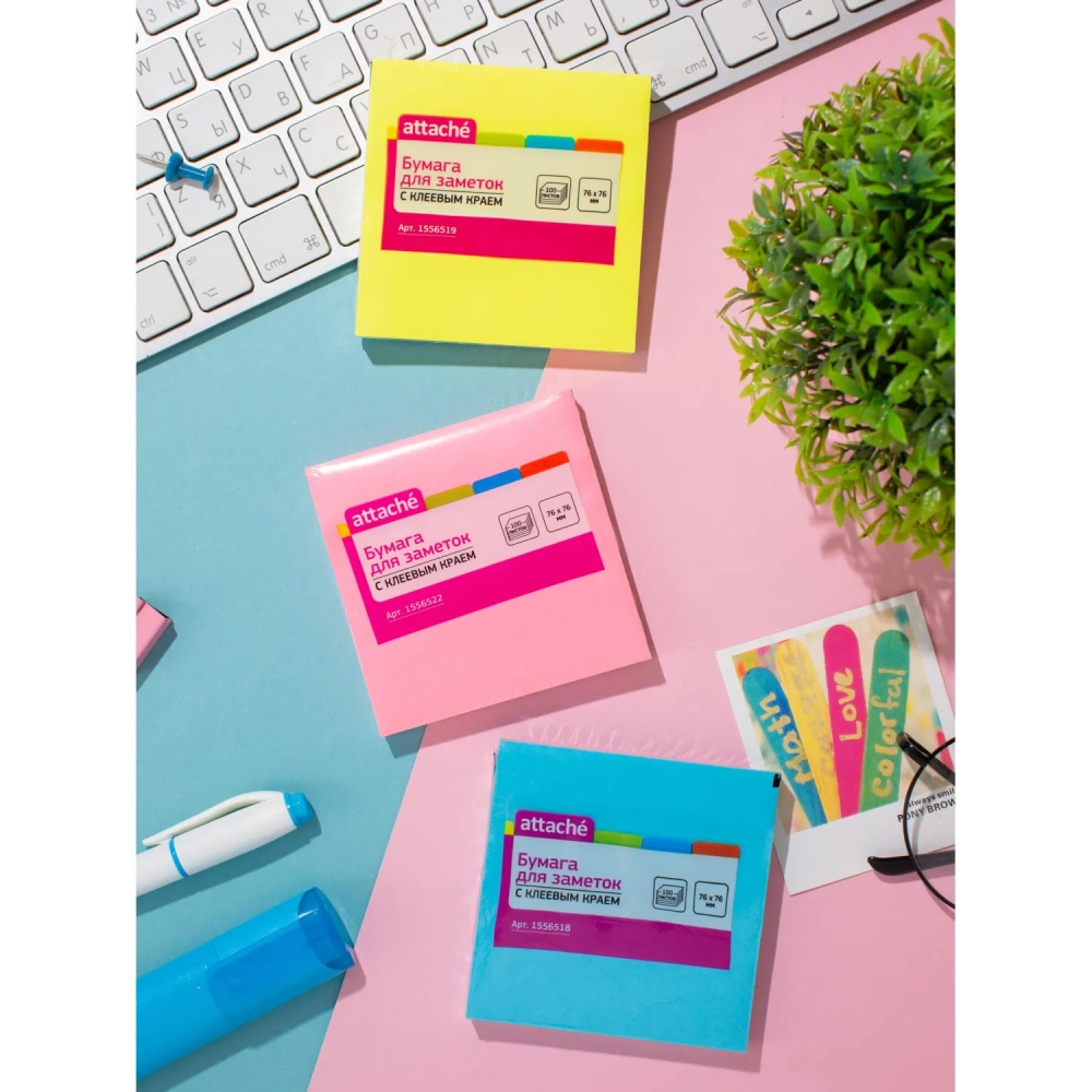 Стикеры Attache с клеевым краем 76х76, неон, розовый 100л