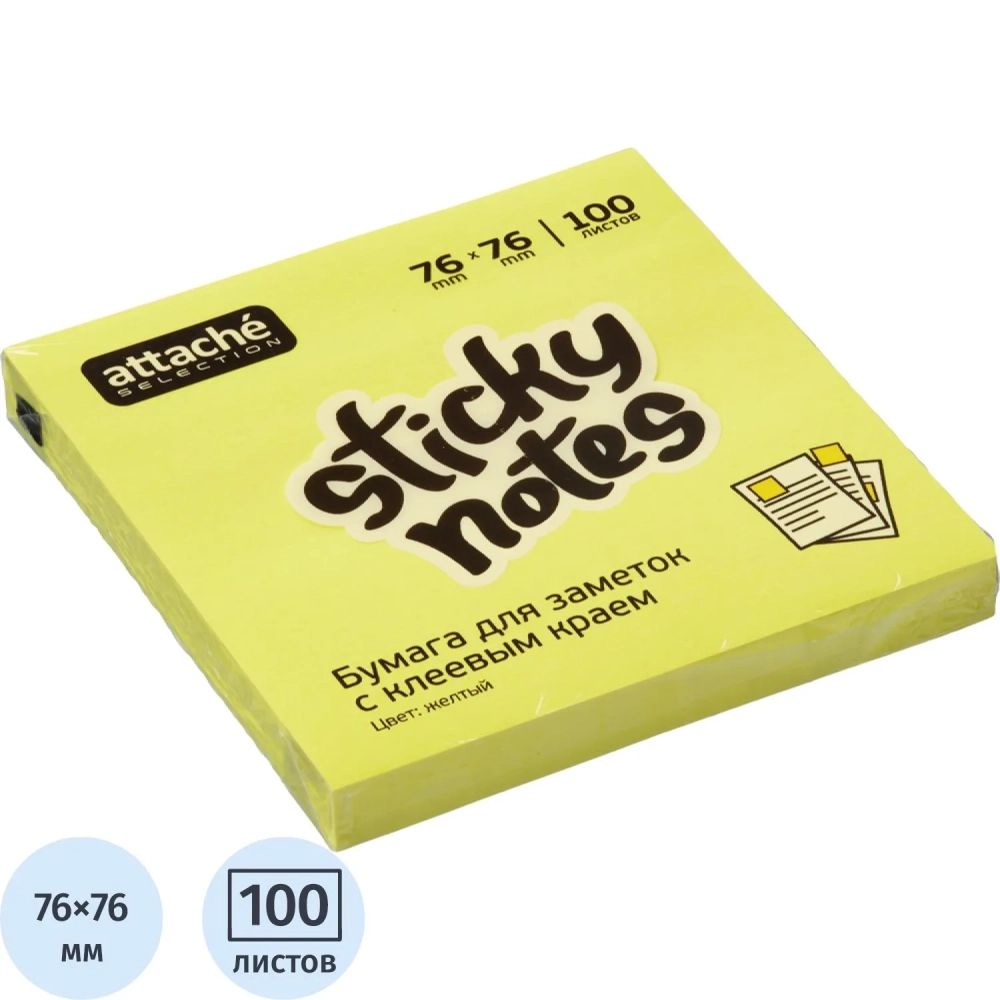 Стикеры Attache Selection с клеев. краем 76х76, неон, желтый 100л