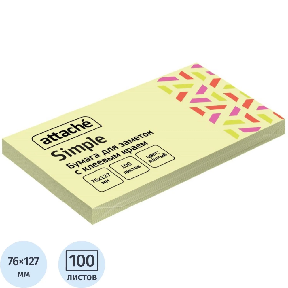 Стикеры Attache Simple 76х127 мм пастельные желтые (1 блок,100 листов)