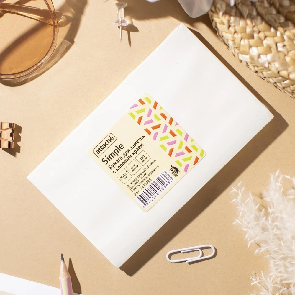 Стикеры Attache Simple 76х127 мм пастельные желтые (1 блок,100 листов)