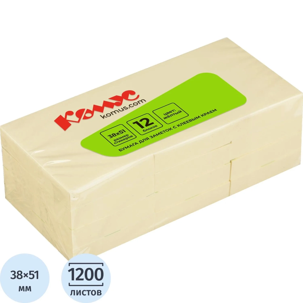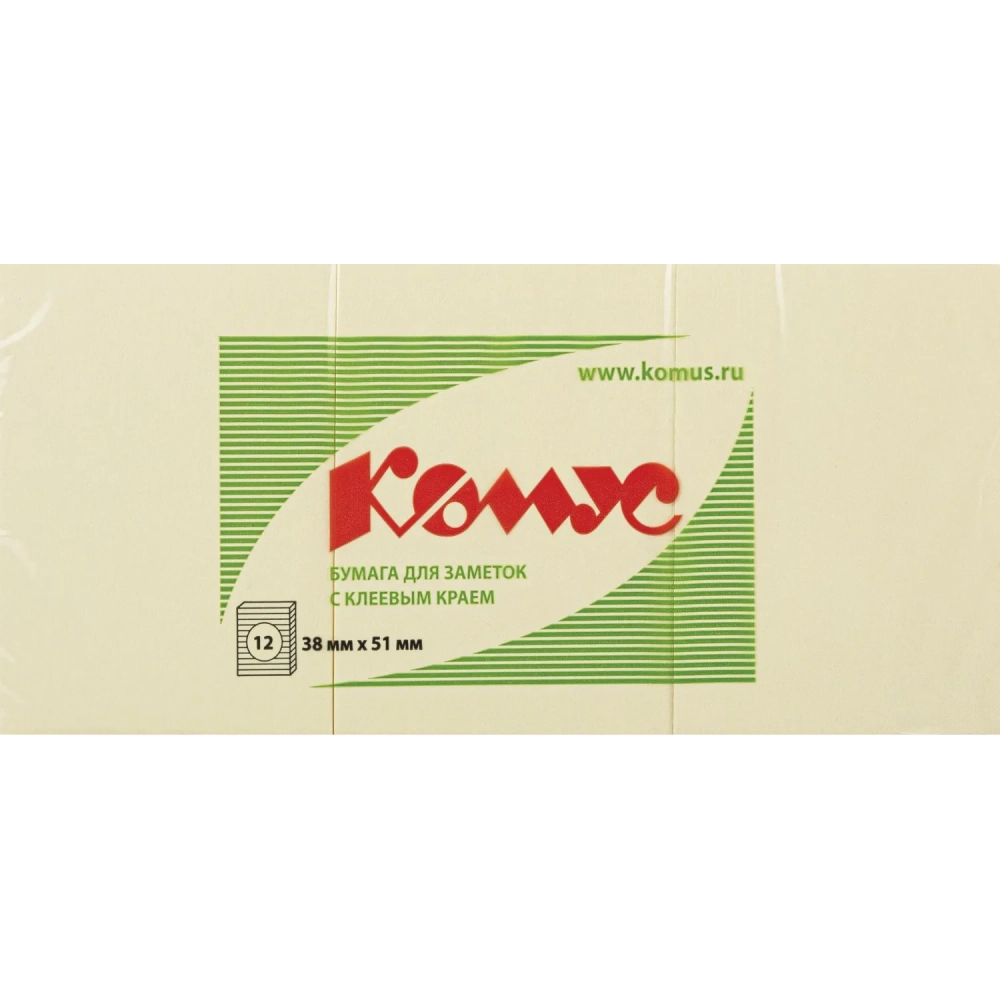 Стикеры КОМУС с клеев.краем 38х51 желтый 12 блоков