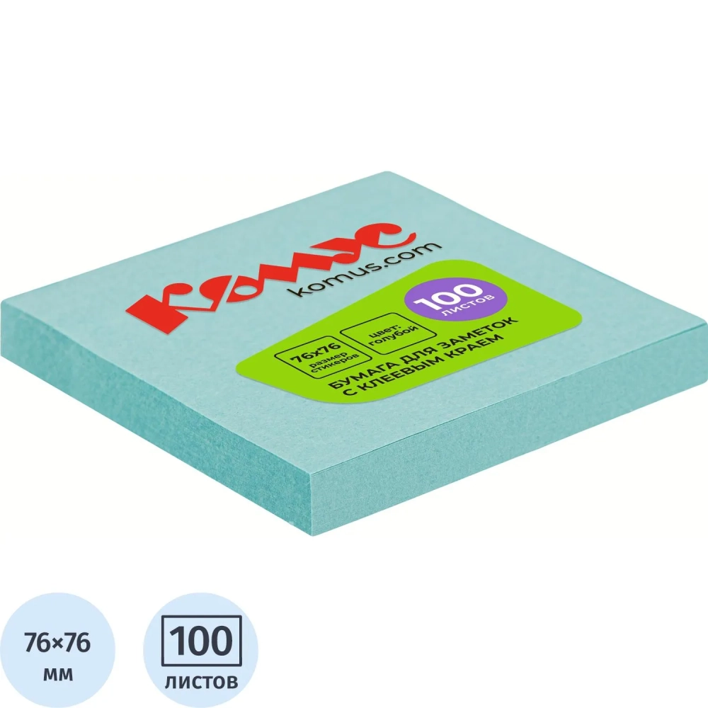 Стикеры КОМУС с клеев.краем 76х76 голубой 100л