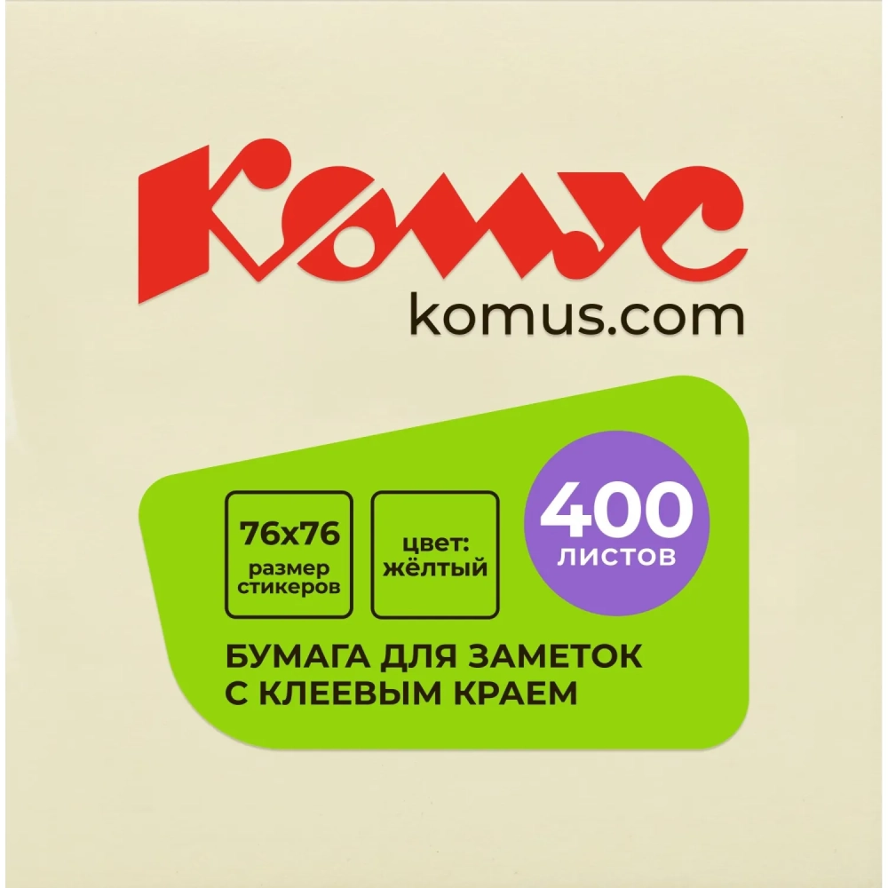Стикеры КОМУС с клеев.краем Куб 76х76 желтый 400л
