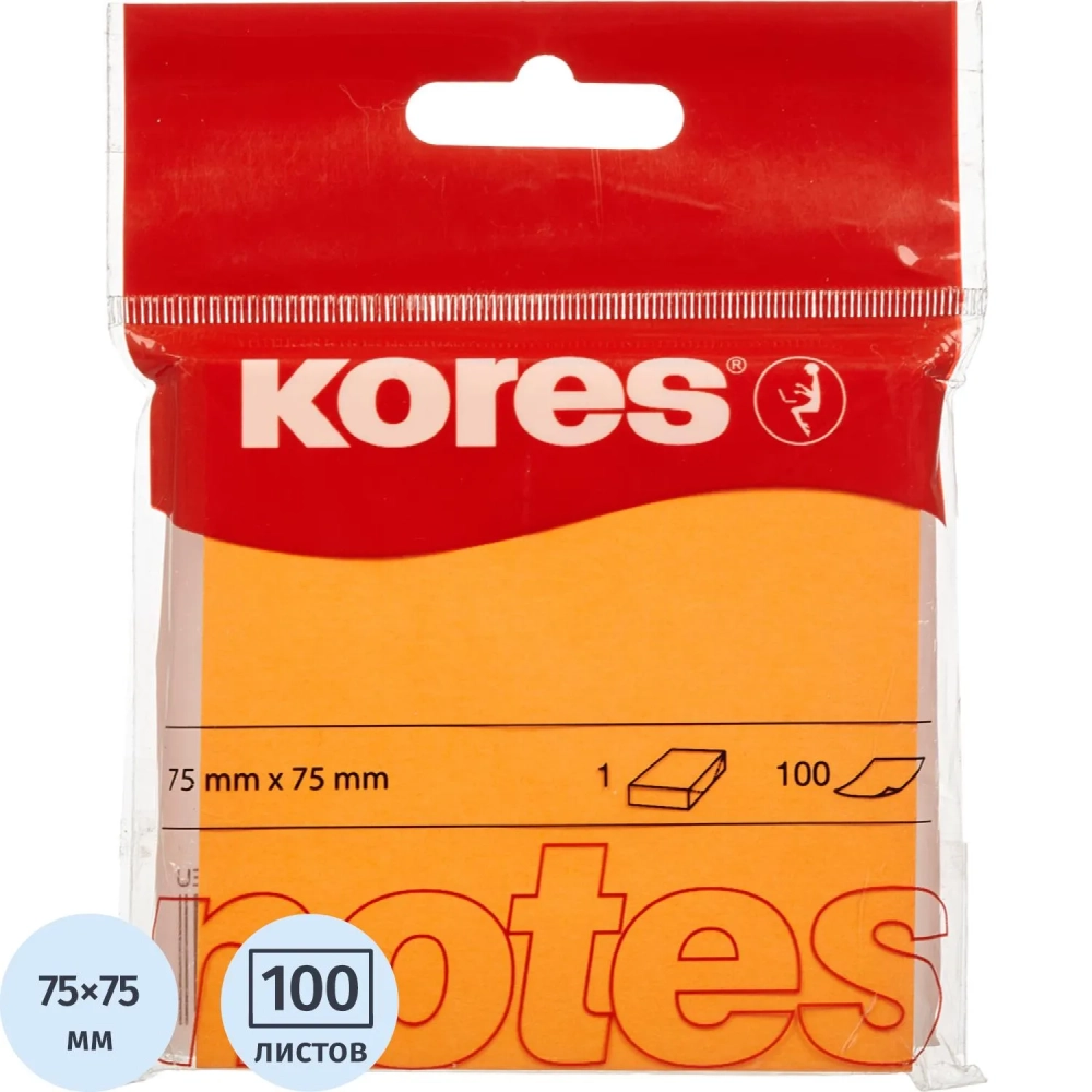 Стикеры Kores бум.для зам. 75х75 неоновая оранжевая 100л. '47074