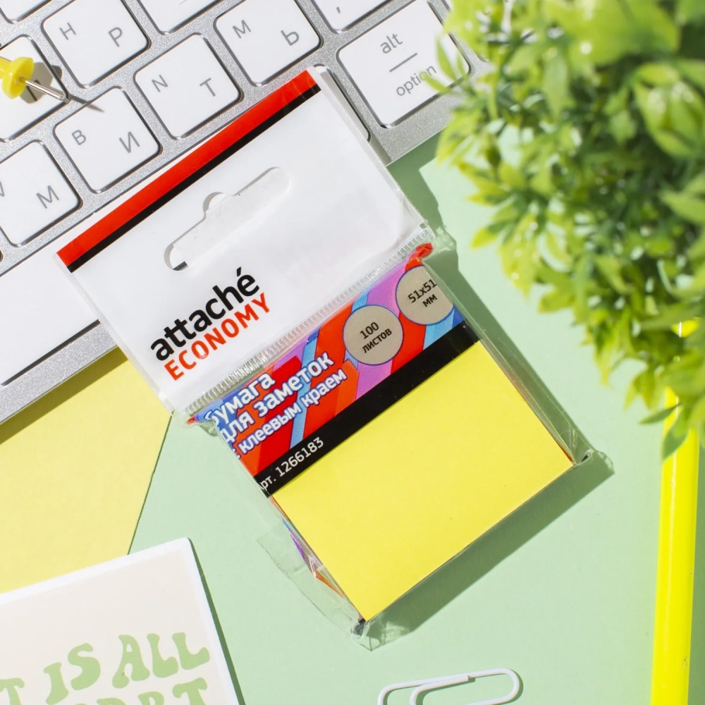 Стикеры с клеев.краем 51x51 мм 100 лист неоновый желтый