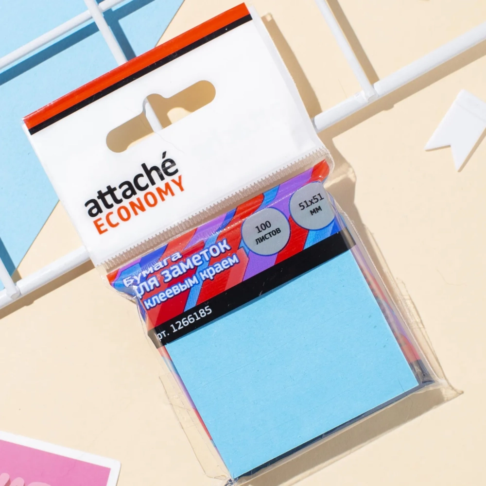 Стикеры с клеев.краем 51x51мм 100 листов неоновый синий